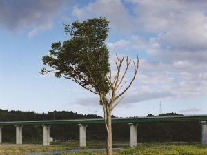 Quinze ans après la vague du tsunami de 2011 qui a touché les côtes du Nord-Est du Japon, les répercussions sont encore prégnantes, dans les paysages, les pensées de chacun, la nature même. Après la publication de Kesengawa (2012) et Rikuzentakata (2016), consacrés aux conséquences plus directes, humaines et matérielles du tsunami, Naoya Hatakeyama s’est intéressé au sort des arbres au fur et à mesure de la reconstruction de la région côtière. Il constate la métamorphose des paysages, inévitable du fait du réaménagement et du retour des activités humaines.