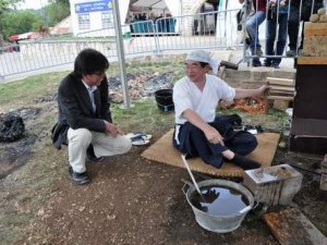 A l’occasion de la 14èmeédition du Festival Fers et Lames, salon des Couteliers et Maréchaux, les 2, 3 et 4 septembre, l’association K12 a invité deux professionnels japonais et un canadien pour une démonstration de forge. Il s’agissait de la première démonstration publique en France de forge traditionnelle japonaise.