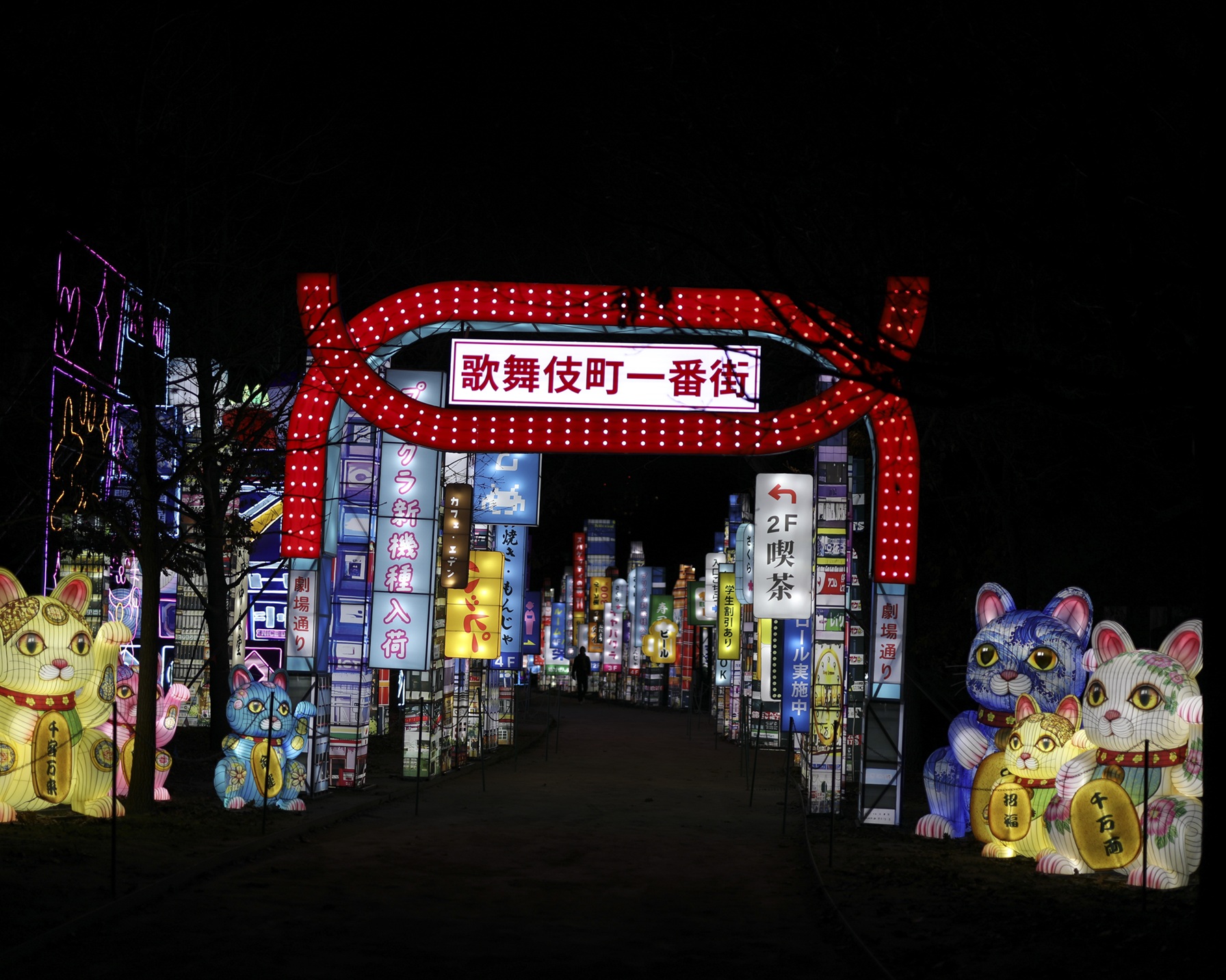 contemporain, des mangas et des personnages emblématiques de la culture kawaii, dans une explosion de façades urbaines barrées de néons et de fantaisie débridée.