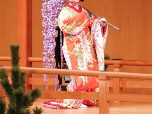 Pour cette découverte de l’art de l’onnagata, le jeune et talentueux acteur de kabuki Nakamura Takanosuke dévoilera sur scène comment il se maquille et revêt son costume, avant d’interpréter un extrait de Fuji-musume (La jeune fille à la glycine), un classique des danses nagauta-buyô. Dans cette pièce emblématique de la danse traditionnelle japonaise, l’esprit d’une fleur de glycine apparaît sous la forme d’une jeune fille et exprime son amour pour un homme à travers de somptueux costumes et des danses gracieuses. Son changement de costume en un clin d’œil est l’un des moments forts de cette pièce.